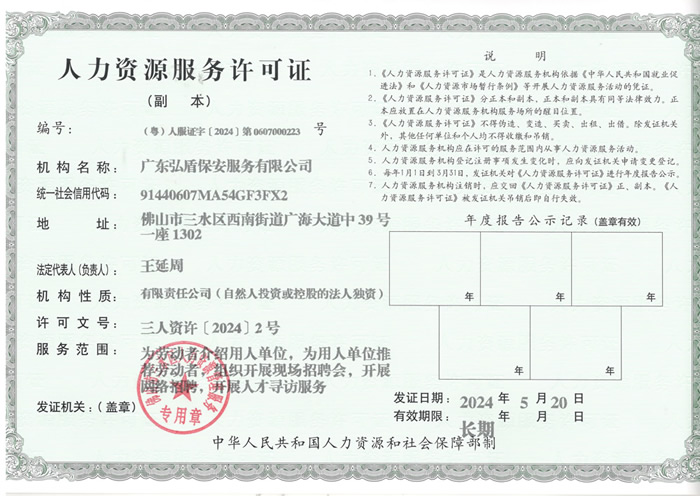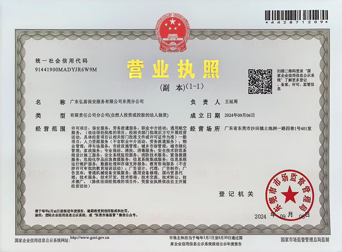 - 廣東弘盾保安服務(wù)有限公司東莞分公司是經(jīng)東莞市公安局嚴格審核,廣東省公安廳批準頒發(fā)《保安服務(wù)許可證》,在東莞市工商行政管理機關(guān)登記注冊的,依法開展門衛(wèi)、巡邏守護、秩序維護、隨身護衛(wèi),安全檢查等綜合安保服務(wù)的專業(yè)保安服務(wù)公司... [詳細介紹]